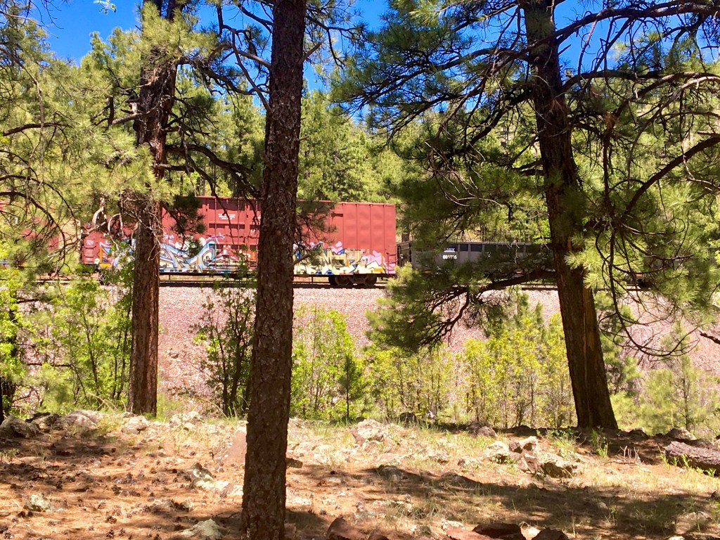 The highlights of the hike had to have been the view of Flagstaff and the train going by a few times during the lower half of the hike. It is also still new to me to see man made piles of underbrush in the woods. Back east there is not nearly as high of a fire danger and so cleaning the underbrush and making piles is not nearly as common. Fire season is at its peak during this time of year and is taken very seriously because of the dry climate and the fires ability to spread. Because of this it is very important to dispose of cigarette butts properly, clear underbrush on private property, and to not have campfires. Be responsible so that the areas you appreciate don’t get burnt down!