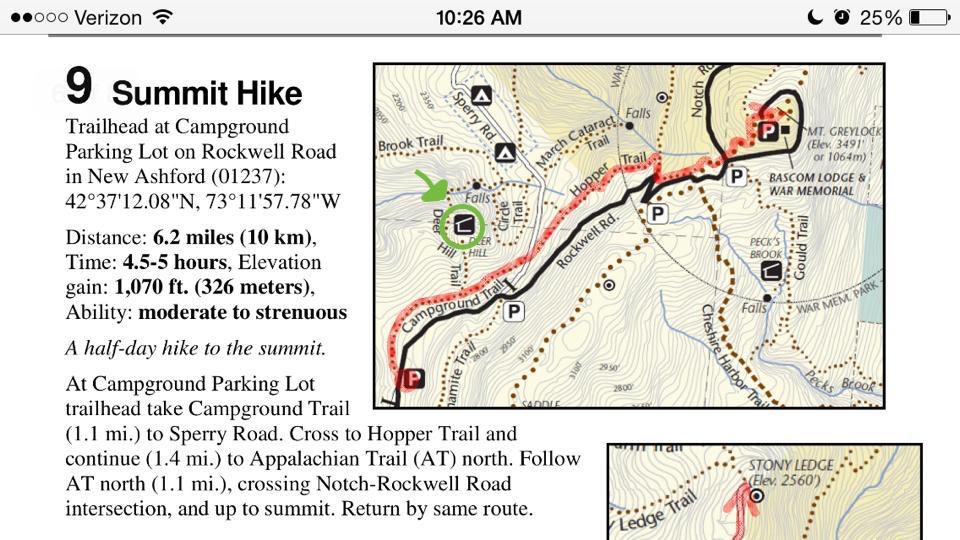 The map and description of our hike to the campsite and summit! Circled in green is where I believe we stayed, the exact site is a little fuzzy to me, it was 6 years ago!