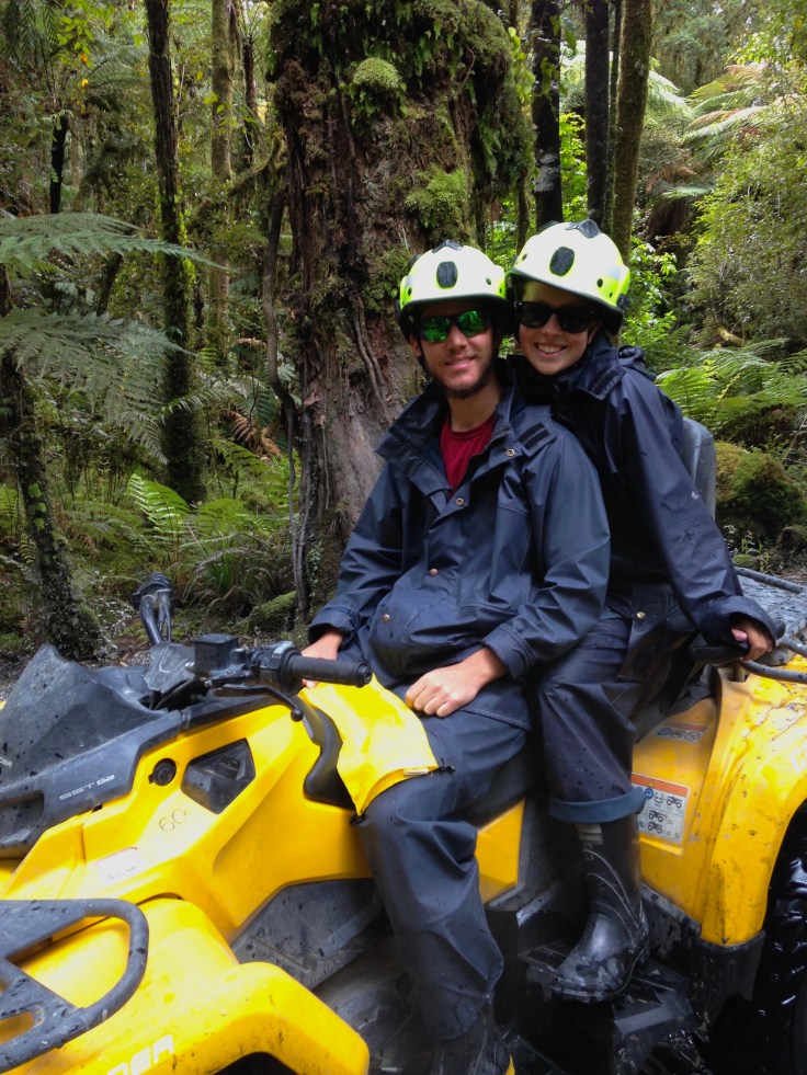 The next day we didn’t do too much and lounged around the campsite and lake for awhile until venturing out to find something to do. We decided on four wheeling with the Across Country Quad Bikes company. After being tested to see if we could successfully drive the four wheeler we headed out down the river bed below Franz Josef closer to the ocean and through what looked like a jungle. The clouds had rolled in during our adventure so the view of the glacier wasn’t fantastic but driving four wheelers around that area was exciting and thrilling enough on its own. Jay drove most of the way but once we got to an easier spot I took a crack at it, and thankfully had no mishaps. A trip with this company is well worth the money and I would definitely do it again.